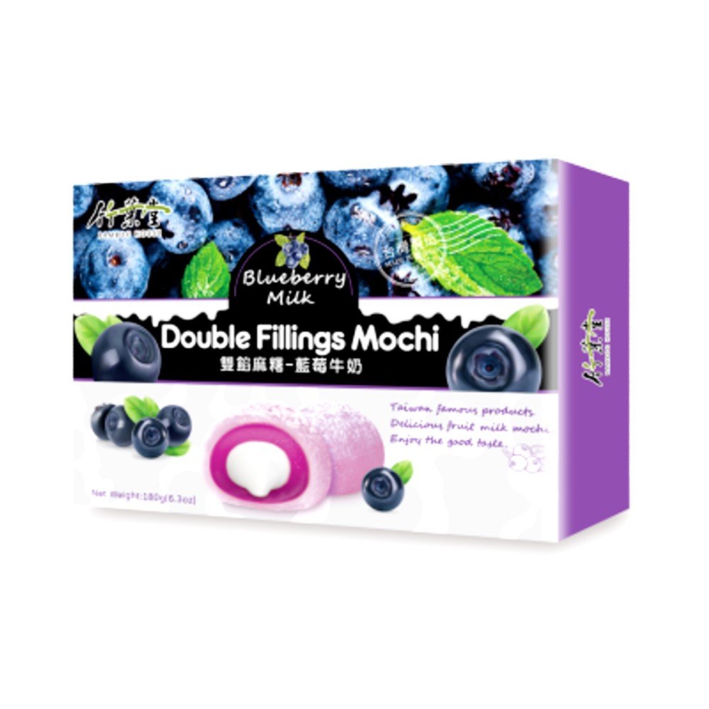 Ciesz się tym Mochi Bamboo House Double Filling Mochi które zapewniają podwójne smakowe nadzienia i podwójną satysfakcję. Mochi jest wypełnione świeżym dżemem jagodowym i nadzieniem mlecznym.