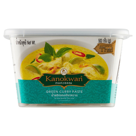 Autentyczne tajskie danie w 15 minut! Zielone curry to niezwykle aromatyczne danie. Jest bardziej ostre jak czerwone curry, jednak wyczuwa się w nim wyraźną nutę słodyczy. Zielone curry składa się z mieszanki przypraw (chili, trawa cytrynowa, galangal, czosnek, kmin) w postaci pasty zamkniętej w dużym opakowaniu - 500 g. Nie zawiera sztucznych dodatków ani konserwantów. Stanowi bazę bardzo popularnego, aromatycznego dania. Wystarczy dodać mleczko kokosowe, warzywa (np. pieczarki, paprykę, cukinię) oraz mięso, najczęściej wieprzowinę lub drób. Dania curry mają swoje korzenie w Azji, ale są znane i cenione na całym świecie. To synonim egzotyki i doskonałej kuchni. Są bardzo łatwe w przygotowaniu.